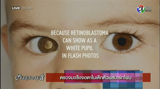 ด้านคุณแม่ชาวสหรัฐคนหนึ่ง ลองทดสอบกับลูกของเธอ แต่เมื่อพบว่า ตาดำของลูกมีสีขาว เธอจึงกระวนกระวายใจและพาลูกไปพบแพทย์ทันที ซึ่งภายหลังจักษุแพทย์ก็ยืนยันว่าเป็นมะเร็งจอตาจริง และทำให้ลูกของเธอสูญเสียการมองเห็น แต่โชคดีที่ตรวจพบมะเร็งก่อนลามไปส่วนอื่น