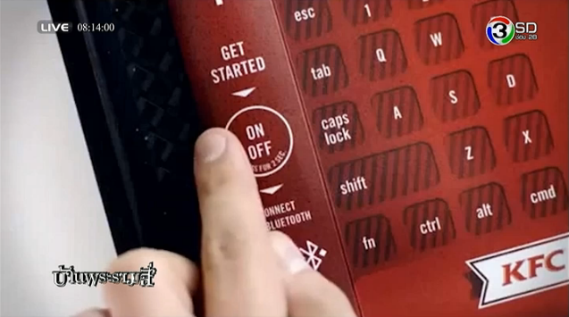 โฆษณาจาก KFC ในเยอรมัน นำเสนอที่รองถาดคีย์บอร์ด โดยสามารถพิมพ์ข้อความแชทได้ระหว่างรับประทานอาหาร