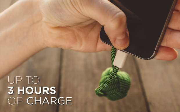 สายทำมาจากสายถักจึงทำให้มีความแข็งแรง มีลักษณะเด่นสะดุดตาคือปมก้อนโตที่ฝังแบตเตอรี่สำรองเอาไว้ ตัวแบตเตอรี่สามารถชาร์จไฟให้พอใช้ได้อีกระยะหนึ่ง เล่นเน็ตประมาณ 2.5 ชั่วโมง/โทร 3 ชั่วโมง/เล่นเพลง 8 ชั่วโมง ในส่วนของการชาร์จแบตมันช่วยให้ชาร์จไฟได้เร็วขึ้นถึง 2 เท่าเมื่อเทียบกับสายชาร์จปกติ และมีให้เลือกหลากหลายสีกันเลย ราคาก็เริ่มต้นที่ $39 หรือประมาณ 1,300 บาท