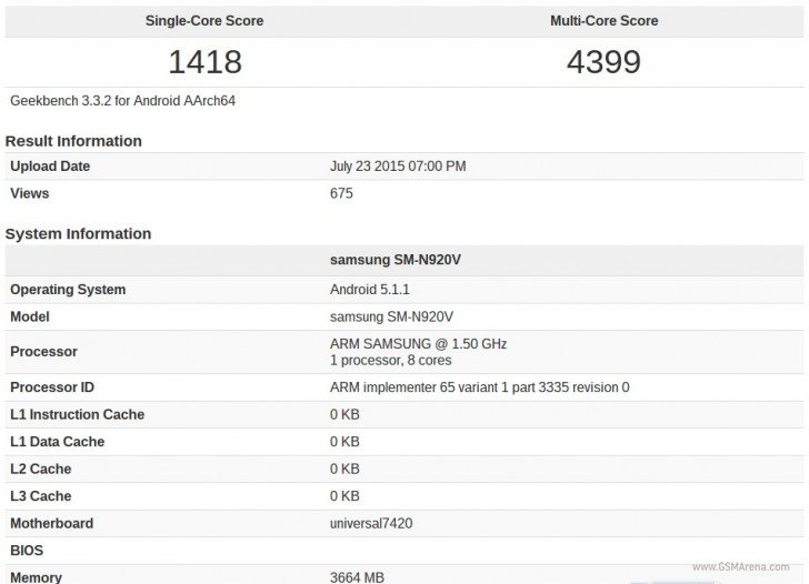 เรื่องที่สองคือ ผลทดสอบ benchmark จาก Geekbench เผยให้เห็นว่า Note 5 จะมาพร้อมกับ RAM 4GB ผล benchmark ยังเผยข้อมูลบอร์ดที่ใช้คือ “7420” นั่นหมายความว่า Note 5 อาจจะใช้ชิพแบบเดียวกับ Galaxy S6 duo หรือ Exynos 7420 นั่นเอง แต่อย่างไรก็ตามก่อนหน้านั้นเคยมีข่าวลือว่าจะใช้ชิพ Exynos 7422 ซึ่งต่างกันแค่มีโมเดมติดมาให้ด้วย อันนี้ก็ต้องรอดูว่าจะเป็นตัวไหน