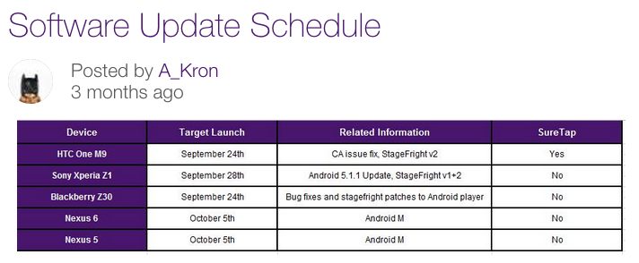 แม้ทาง Google ยังไม่ได้ประกาศอย่างเป็นทางการแล้ว ว่า Android 6.0 Marshmallow ปล่อยอัพเดทเมื่อไหร่ แต่ Telus ผู้ให้บริการเครือข่ายจากแคนาดา ได้เผยความลับว่า 5 ตุลาคมนี้จะได้อัพเดทกัน