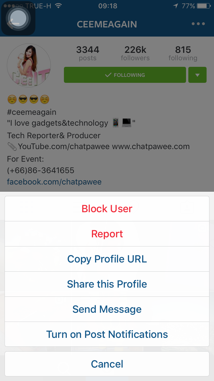 สำหรับคนที่ไม่อยากพลาดโพสต์จากคนที่คุณสนใจ ให้เข้าไปที่หน้าแรกหรือภาพไหนก็ได้ของคนนั้นๆ จากนั้นให้กดที่จุดไข่ปลาสามจุดตรงมุมขวาบน จากนั้นก็ให้เลือก “turn on push notifications” ง่ายๆเท่านี้เอง