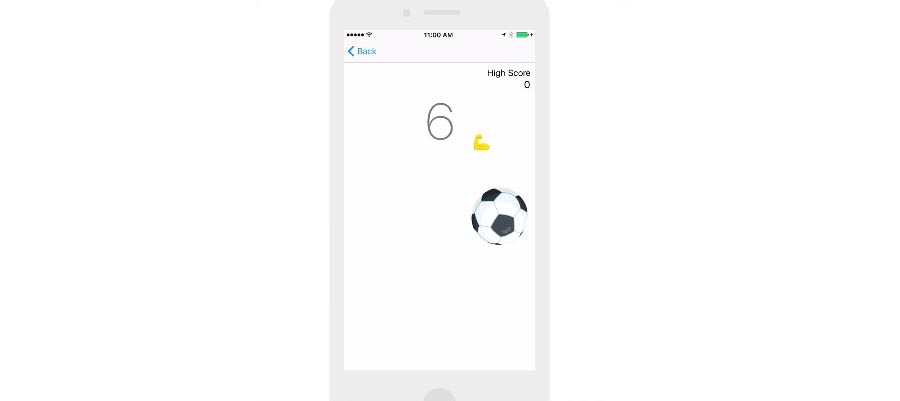 การทำงานของเกมฟุตบอลี้จะเหมือนกับบาสเก็ตบอล หนึ่งคือ เลือกรายชื่อเพื่อนขึ้นมาหนึ่งคน จากนั้นก็ให้ส่งอีโมจิรูปลูกฟุตบอลไปให้ หลังจากส่งเรียบร้อยแล้วให้เรากดตรงรูปอีโมจิที่ส่งไป เกมก็จะเริ่มทำงานทำที (ใครลองแล้วไม่ได้ อาจจะต้องกดอีโมจิหลายทีหน่อย) ตัวเกมก็เล่นได้ง่ายมาก คล้ายๆกับเกม Flappy Bird ก็คือใช้นิ้วแตะหน้าเจาะเพื่อเดาะบอลไม่ให้ตกพื้น ยิ่งเดาะเยอะก็ยิ่งได้คะแนนเยอะ ซึ่งคุณสามารถเล่นแข่งกับเพื่อนได้ด้วย