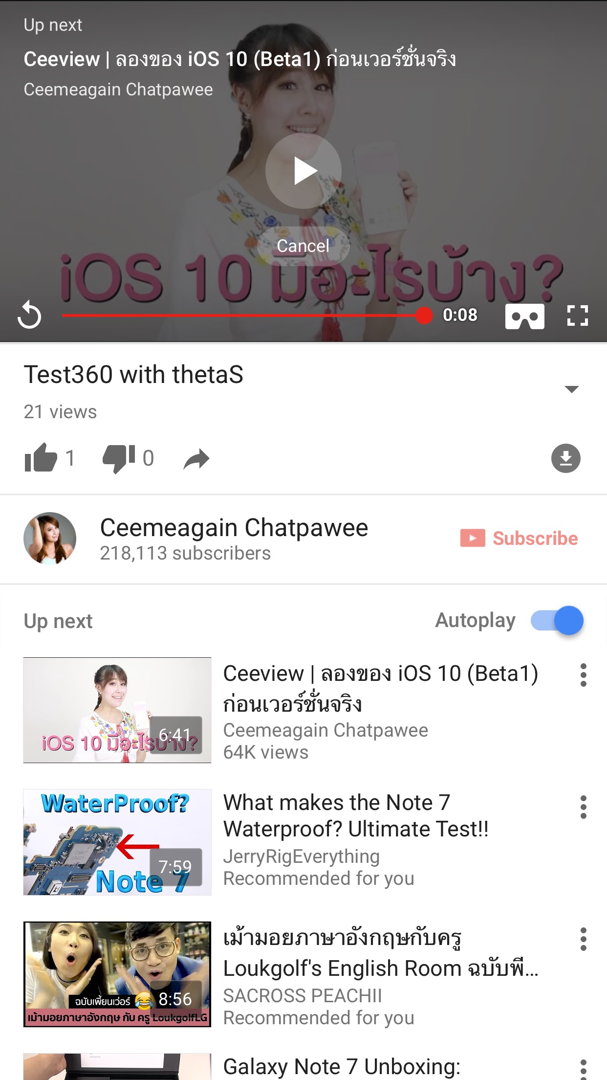 พอแชร์ลงไปคลิปที่ได้หน้าตาแบบนี้คะ มีสัญลักษณ์แว่นตาคือถ้ามีแว่น google cardboardหรือ gearVR ใส่แล้วดูคลิป360องศาได้เลย แต่ไม่มีก็เอามือถือสาดขวาซ้ายส่องได้เหมือนกัน!!!