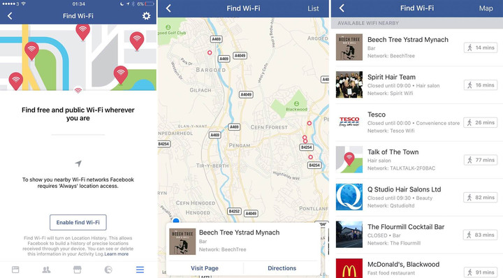 ฟีเจอร์ใหม่นี้เราจะต้องไปตั้งค่าใน options ของแอป Facebook ก่อน ซึ่งเราต้องเปิดให้แอปเข้าถึงพิกัดของเราตลอดเวลา จากนั้นให้กดเข้าไปที่เมนูจะเห็นแท็บ “Find WiFi” เมื่อกดเข้าไปเราจะเห็นลิสต์รายชื่อจุดปล่อยไวไฟฟรี พร้อมแสดงพิกัดบนแผนที่ ถ้าอยากใช้อันไหนกลัวไปไม่ถูกก็เลือกจุดที่ต้องการกดนำทางไปได้เลย ซึ่งฟีเจอร์นี้จะใช้งานได้เฉพาะบนแอป iOS ก่อน แน่นอนว่าฟีเจอร์นี้มีประโยชน์มากๆสำหรับนักท่องเที่ยว ที่ไม่ได้เปิดโรมมิ่งไปหรือต้องการประหยัดค่าใช้จ่ายในการเล่นเน็ต