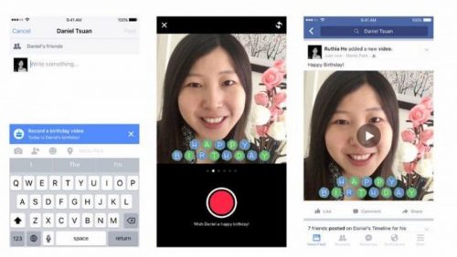 นอกจากฟีเจอร์แจ้งเตือนวันเกิดแล้ว ก็ยังมีลูกเล่นบนแอปเฉพาะ iOS ที่ช่วยให้คุณอวยพรวันเกิดเพื่อนหรือคนที่คุณรัก ด้วยการอัดและถ่ายคลิปวิดีโออวยพรวันเกิดพร้อมฝังป้าย Happy Birtday ลงในคลิปให้เลย วิธีการใช้งานไม่ยากแค่เข้าไปหน้าโปรไฟล์ของเพื่อนที่เกิดวันนั้นผ่านแอปบน iOS คุณจะเห็นป้ายแบนเนอร์สร้างวิดีโออวยพรวันเกิด กดเข้าไปแล้วก้อัดวิดีโอได้ทันที รับรองเพื่อนคุณจะต้องเซอร์ไพรซ์แน่นอน