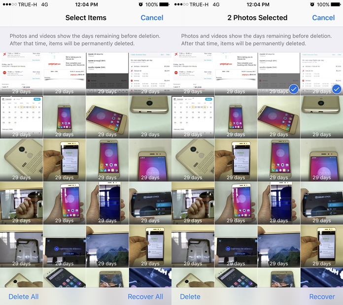 แต่สำหรับมือถือระบบปฏิบัติการ iOS หากคุณสำรองรูปใน iCloud ก็มีจะไม่มีปัญหาในการลบ แต่ถ้าไม่ได้สำรองนั้น ให้คุณเข้าไปที่ คลังภาพ (Photos) > อัลบั้ม (Album) >Recently Deleted หรือ ที่เพิ่งลบล่าสุด ตรวจดูว่ารูปนั้นยังอยู่หรือไม่ เพราะส่วนใหญ่ที่อยู่ใน Folder นี้จะถูกเก็บไว้ในเวลา 30 วันเท่านั้น หากไม่กดเรียกคืน ก็จะถูกลบออกไปเองแล้วจะกู้ไม่ได้ตลาดกาล