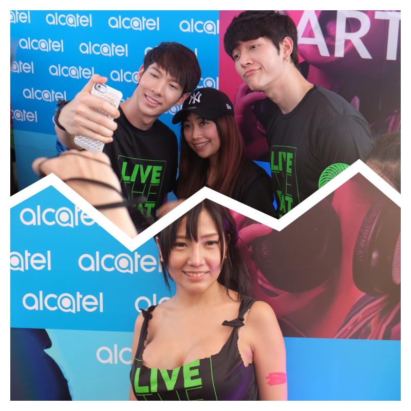 บูทของอัลคาเทลนั้นมาในธีมฟ้าขาว สีสดใสเห็นชัดแต่ไกลเลยค่ะ ภายในบูทของ Alcatel ก็มีกิจกรรมมากมายหลายอย่าง สร้างความคึกคักให้กับผู้ที่เข้ามา ไม่ว่าจะเป็นการแจกลูกโป่งเอาไว้โบกเวลาดูคอนเสิร์ต มีโซนให้เราแต่งหน้า ติดสติกเกอร์รอยสัก รวมถึง Body paint ทาสีสะท้อนแสงสีเจ็บๆให้เข้ากับบรรยากาศธีมงาน Party Glow in The Dark, Dress Up & Color up Your Style ซึ่งใครที่ถ่ายรูป Selfie ติดแฮชแท็กก็จะมีโอกาสร่วมสนุกลุ้นรางวัลเป็นสมาร์ทโฟนจาก Alcatel ด้วย