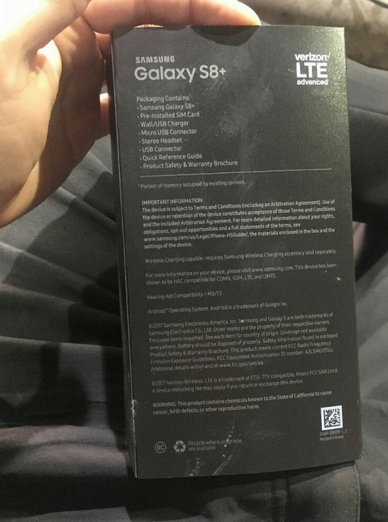 ใกล้เปิดตัวแล้วสำหรับ Samsung Galaxy S8 นั้นใกล้จะเปิดตัวแล้วอย่างเป็นทางการ ก็ยังคงมีภาพเพิ่มเติมและมีภาพกล่องของ Samsung Galaxy S8+ ออกมา โดยเป็นเครื่องจำหน่ายจาก Verizon ลักษณะของกล้องนั้นจะเป็น กล่องสีดำ และ ชื่อรุ่นเป็นสี sparkling blue