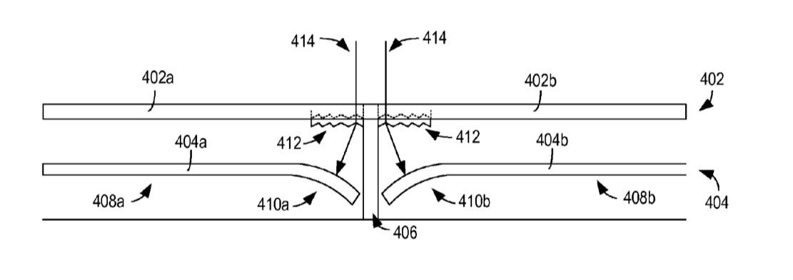 ในสิทธิบัตรดังกล่าวจะประกอบไปด้วยหน้าจอที่โปร่งแสง Transparent outer layer โดยมีทั้งชั้นแสดงผล และมีส่วนของพับหน้าจอที่จะเป็นส่วนโค้ง ซึ่งจะทำให้หน้าจอนั้นสามารถพับได้ ซึ่งเมื่อใช้งานจริงอาจจะแสดงผลได้ทั้ง 2 ด้าน แต่ก็ยังมีอีกวัสดุคือการป้องกันไม่ให้มองเห็นจากอีกฝั่งหนึ่ง