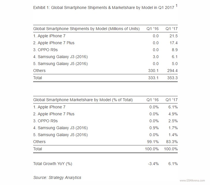 ซึ่งตอนนี้ OPPO R9sมียอดการส่งมอบทั้งหมดกว่า 8.9 ล้านเครื่อง ตามหลังแค่ iPhone 7 และ iPhone 7 Plus อยู่พอสมควร แต่ก็ถือว่าขายได้เยอะเมื่อเทียบกับอันดับที่ 4 และที่ 5 คือ Samsung Galaxy J3 (2016) และ Galaxy J5 (2016)