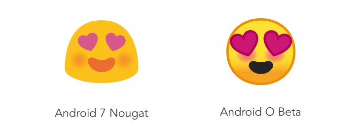 สำหรับ Android ระบบปฏิบัติบัติการของ Google เริ่มมีการใช้ Emoji มาตั้งแต่สมัย Android 4.4 แล้ว แม้ว่าจะม่รูปแบบที่ไม่ได้ชัดเจนมาก แต่ก็น่าสนใจ จนกระทั่ง Android O ที่กำลังจะเปิดตัวนั้นก็มีข่าวออกมาว่าจะมีการเปลี่ยน Emoji อีกแล้ว