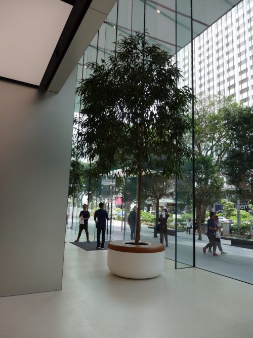 ต้นไม้ในนี้เป็นเอกลักษณ์ร้านแอปเปิ้ลเลยคะ ต้นไม้พวกนี้เป็นของจริง ออกแบบมาเป็นที่นั่งได้ คนอยู่ข้างในสบายตา สบายใจ รมรื่น และมีฟังก์ชั่นด้วย
