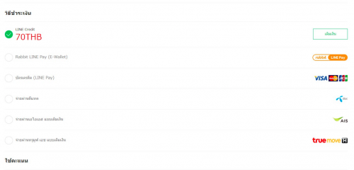 ในเว็บเองก็มีทางเลือกในการจ่ายเงินหลายรูปแบบมาก เริ่มตั้งแต่ จ่ายด้วย E-wallet, บัตรเครดิต ส่วนตัวเลือกที่น่าสนใจก็คือจ่ายเงินผ่านเครือข่ายมือถือ ได้หมดทุกค่าย dtac, True และ AIS แต่สองค่ายหลังจะรองรับเฉพาะคนที่ใช้ระบบเติมเงินนะ โดยจะไปหักค่าสติ๊กเกอร์จากเงินที่เราเติมไว้