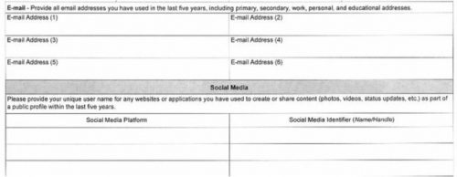 หลังจากมีข่าวมานานว่า การจะขอวีซ่าเข้าประเทศสหรัฐอเมริกาจะต้องกรอกข้อมูลสื่อสังคมออนไลน์ที่คุณใช้งาน ล่าสุดกฎนี้จะเริ่มมีผลบังคับใช้แล้ว โดยคุณจะต้องกรอกชื่อบัญชีผู้ใช้งานของสื่อสังคมออนไลน์ทั้งหมดที่คุณใช้ใน 5 ปีหลังสุดผ่าน แบบสอบถามฉบับใหม่