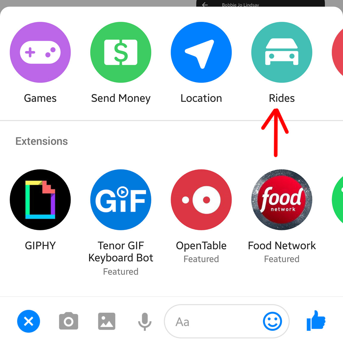 การเรียกรถ Taxi เช่น Uber หรือ Lyft นั้นสามารถทำได้จาก Facebook Messenger โดยแค่กด + แล้วกดเรียกรถจากนั้น Apps ก็จะ Order การเรียกรถให้ทันที ไม่ต้องเข้า Apps อื่นให้เสียเวลา