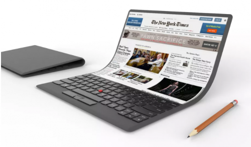 ผู้ผลิตคอมพิวเตอร์รายใหญ่เผยแนวคิด Laptop ยุคถัดไป จะเปลี่ยนมาใช้จอภาพที่มีความยืดหยุ่นสูง สามารถปรับองศาการเอียงได้ตามการใช้งาน รวมถึงสามารถม้วนหรือพับเก็บได้เหมือนเสื่อโยคะ ตัวเครื่องมาพร้อมคีย์บอร์ดในตัวด้วยดีไซน์แบบเดียวกับที่ใช้ในรุ่น ThinkPad แต่จะไม่มี trackpad มาให้ เปลี่ยนไปใช้การสั่งงานด้วยเสียงแทน รวมถึงอาจจะใช้สไตลัสจิ้มจอได้ด้วย
