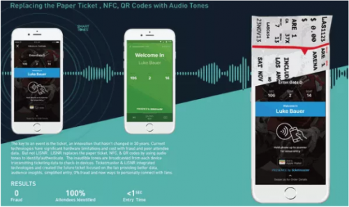 ปกติการตรวจบัตรเข้างานส่วนใหญ่ก็จะใช้วิธีสแกนบาร์โค้ดหรือ QR code บนตั๋ว ซึ่งถ้าคนต่อคิวเยอะๆก็จะใช้เวลานาน ทาง Ticketmaster จึงคิดค้นเทคโนโลยี “smart tone” มาช่วย หลักการทำงานก็คือ ตรวจจับการส่งสัญญาณเสียงอัลตราโซนิคจากสมาร์ทโฟนเพื่อตรวจสอบหมายเลขตั๋วและ ID จากนั้นหน้าจอมือถือจะโชว์หน้าจอยืนยัน เราก็แค่เอาให้เจ้าหน้าที่ดูแล้วเดินเข้างานได้ทันที
