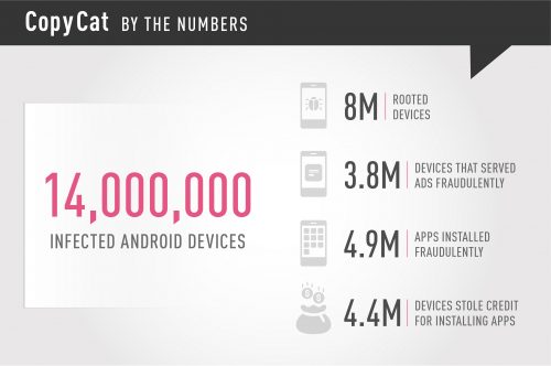 พบมัลแวร์ตัวชื่อ CopyCat บน Android คาดมีคนโดนแล้วไม่ต่ำกว่า 14 ล้านเครื่องทั่วโลก ติดแล้วมันจะส่งโฆษณาและหลอกให้โหลดแอปเพื่อทำเงินให้แฮคเกอร์