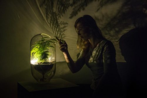 เจ้าของผลงานชิ้นนี้ก็คือนักออกแบบผลิตภัณฑ์ชื่อว่า Ermi van Oers เค้าได้สร้างโคมไฟที่ใช้พลังงานไฟฟ้าจากพืช ด้วยการนำอิเลคตรอนที่พืชปล่อยออกมาในกระบวนการสังเคราะห์แสง ทำให้เราได้แหล่งพลังงานใหม่ที่เป็นมิตรกับธรรมชาติ