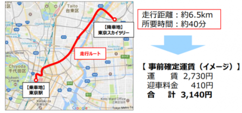 แอปนี้เกิดจากแนวความคิดของกระทรวง Ministry of Land, Infrastructure, and Tourism ของญี่ปุ่น เพื่อช่วยให้นักท่องเที่ยวสามารถเรียกแท็กซี่ได้อย่างสบายใจขึ้น ผู้โดยสารสามารถจองรถผ่านแอป เมื่อเราใส่ต้นทางปลายทางค่าโดยสารก็จะปรากฎให้เห็นบนจอเลย โดยที่เราไม่ต้องจ่ายเพิ่มจากที่แอปคิดออกมา บริการนี้จะเปิดทดสอบให้บริการในวันที่ 7 สิงหาคมนี้ ภายใต้ความร่วมมือกับบริษัทแท็กซี่รายใหญ่ 4 แห่ง