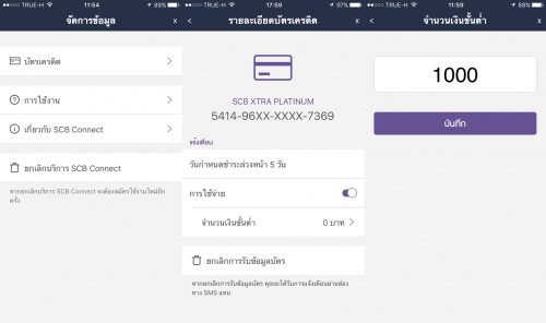 - มีแจ้งเตือนทุกครั้งที่มีการใช้บัตรเครดิต ช่วยเพิ่มความอุ่นใจในกรณีที่ถ้ามีใครแอบแฮคหรือเอาบัตรเราไปใช้ก็จะรู้ได้ทันที ใครที่ไม่อยากให้แจ้งเตือนบ่อยๆ เราก็เข้าไปเปลี่ยนยอดเงินรูดใช้ขั้นต่ำที่ต้องการแจ้งเตือนได้ เช่น ให้แจ้งเตือนยอดที่มากกว่า 1,000 บาทขึ้นไป ใครที่ขี้ลืมก็ยังสามารถเปิดการแจ้งเตือนก่อนวันชำระเงินล่วงหน้า 5 วัน จะได้ไม่ลืมจ่ายเงินจนต้องเสียค่าปรับโดยใช้เหตุ