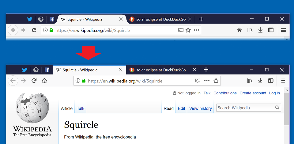 นอกจากนี้เรื่องปรับ Tab ให้เป็นแบบตรงเหมือนกับ Microsoft EDGE แต่ว่ามีการเพิ่มลูกเล่น icon ที่ขยับเองได้ รวม Tab ชื่อเว็บและการค้นหาไว้ที่เดียวกันเพื่อลดการสับสนของผู้ใช้งาน และรวมไปถึง เพิ่มจุดรวมการควบคุมเว็บเพจ (เรียกว่า page action เช่น bookmark/Pocket) และเราสามารถลากปุ่มที่ใช้บ่อยๆ มาวางไว้ใน URL bar ได้