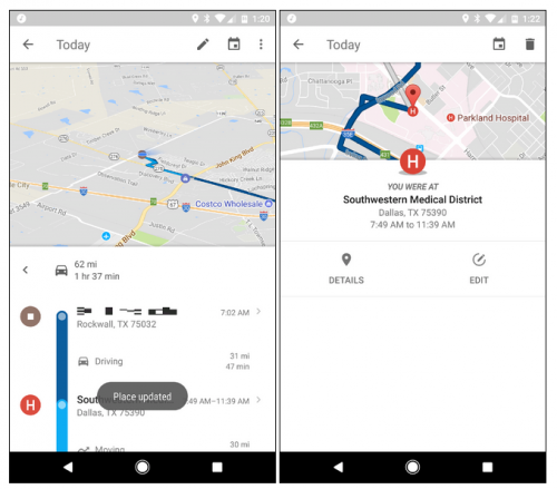 จากนั้นมันก็จะแสดงแผนที่ขนาดเล็กขึ้นมาพร้อมแสดงสถานที่ล่าสุดที่คุณเคยไป ถ้าหากต้องการแก้ไขหรือลบก็ให้กดเข้าไปสถานที่ที่ต้องการ ซึ่งเราสามารถแก้ไขเปลี่ยนเวลา รวมถึงแก้พิกัดให้แม่นยำขึ้น ถ้าอยากลบก็ให้แตะที่ไอคอนรูปถังขยะตรงมุมขวาบน ซึ่งก่อนลบจะต้องมีการ verify ตัวตนก่อน