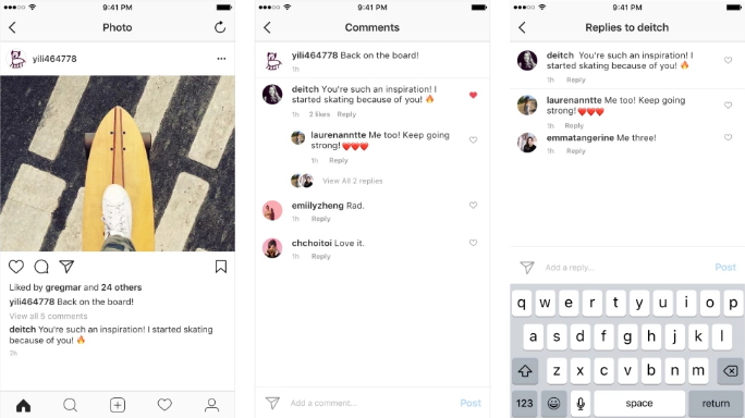 การพิมพ์โต้ตอบกับคนอื่นบนสื่อสังคมออนไลน์ถือเป็นเสน่ห์อีกอย่างที่ทำให้เราใช้งานได้สนุกขึ้น แต่ก่อนนั้นถ้าเราอยากคุยกับใครใน Instagram ก็ต้องกล่าวถึงด้วยการใส่ @ตามด้วยชื่อ ซึ่งทำให้เสียเวลาเป็นอย่างมากเพราะเราต้องมาคอยพิมพ์ชื่อคนตลอด มาวันนี้เค้าอัพเดทให้ไม่ต้องใส่อีกต่อไปและถ้าการ Reply ตอบกันเยอะก็ไม่ต้องห่วงว่าจะรกสายตา เพราะเค้าจะมีการซ่อนข้อความให้อัตโนมัติ หากมีการพิมพ์มากกว่า 2 คอมเมนต์แบบโต้ตอบ ทำให้การแสดงผลนั้นน้อยลงนั่นเอง