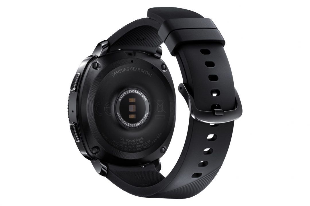 ส่วน Gear Sport นั้นใช้หน้าจอ 1.2 นิ้ว Super AMOLED ความละเอียด 360×360 กระจก Gorilla Glass 3 พร้อมกับ สเปคใกล้เคียงกับ Gear Fit 2 Pro แตกต่างที่ มี NFC มาให้, มีแบตเตอรี่ขนาด 300 mAh พร้อมกับติดตั้งโปรแกรมออกกำลังกายทั้ง Under Armour’s UA Record, together with MapMyRun, MyFitnessPal, และ Endomondo