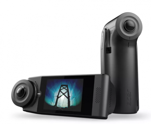 Acer กลายเป็นอีกค่ายมือถือที่หันมาจับตลาดกล้อง 360 องศาแบบจริงจัง ด้วยการเปิดตัวกล้องรุ่นใหม่พร้อมกันถึง 2 รุ่น โดยรุ่นแรกมีชื่อว่า Acer Holo360 ตัวกล้องมีขนาดพอๆกับสมาร์ทโฟนมาพร้อมเลนส์สองตัวหน้าหลังสามารถถ่ายวิดีโอ 360 องศาที่ความละเอียด 4K ใช้ขุมพลัง Qualcomm Snapdragon 625 ในการประมวลผล มีหน้าจอขนาด 3 นิ้วด้านหลัง พร้อมระบบปฏิบัติการแอนดรอยด์ 7.1 แถมเชื่อมต่อ LTE ได้ด้วย ช่วยให้เราถ่ายและแชร์ภาพได้ง่ายและสะดวกขึ้นแม้ไม่มีมือถือก็ตาม