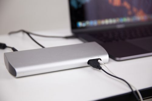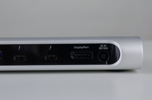 ตัวเครื่องจะมีพอร์ต DC In สำหรับเสียบกับไฟฟ้าเพื่อให้ทำงานได้ เราสามารถใช้ USB-C ชาร์จไฟ 85W ให้กับแล็ปท็อปได้ รองรับการชาร์จ Mackbook Pro ทั้งจอ 13 นิ้วและ 15 นิ้วได้สบายๆ คือในขณะที่ใช้งานก็ชาร์จแบตไปด้วย ไม่ต้องห่วงแบตหมด