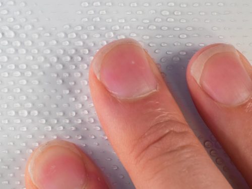 แผ่นนี้มีชื่อว่า Surfaceskins เป็นแผ่นบางๆเอาไว้ติดกับประตูส่วนที่คนผลักบ่อยๆ ตัวแผ่นจะมีรูเล็กๆกระจายอยู่ทั่วไป โดยด้านในจะใส่เจลน้ำยาฆ่าเชื้อโรคเข้าไป เมื่อเราใช้มือออกแรงผลักประตู ก็จะเหมือนกับการบีบเจลให้ไหลออกมาทำความสะอาดฝ่ามือในเวลาไม่กี่วินาที