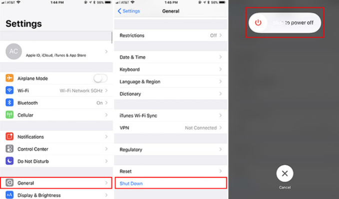 เข้าไปที่ Setting (ตั้งค่า) > General (ทั่วไป) > เลื่อนลงไปล่างสุดจะเจอกับคำว่า Shut Down