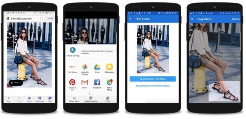 สองเครื่องมีอนี้จะต่างกันก็คือ Image Search จะให้คุณถ่ายภาพที่ต้องการด้วยกล้องมือถือ จากนั้นก็จะค้นหาสินค้าหน้าตาเหมือนกันที่วางขายในอีเบย์มาให้ ส่วน Find it on eBay นั้นจะให้คุณเลือกภาพจากเว็บ third-party อย่าง Facebook, Pinterest, Instagram หรือบล็อก เพียงแค่นำ URL มาใส่เข้าไปใน eBay ก็จะทำการค้นหาของที่เหมือนกันให้ แต่ที่เหนือกว่าก็คือเราสามารถซูมรูปเพื่อเลือกของที่ต้องการได้ด้วย ทั้งหมดนี้เป็นเพียงแค่จุดเริ่มต้นเท่านั้น เพื่อช่วยให้ผู้ใช้หาของที่ต้องการได้โดยไม่ต้อพิมพ์หาอีกต่อไป ยิ่งใช้งานก็ยิ่งจะฉลาดขึ้นเรื่อยๆ