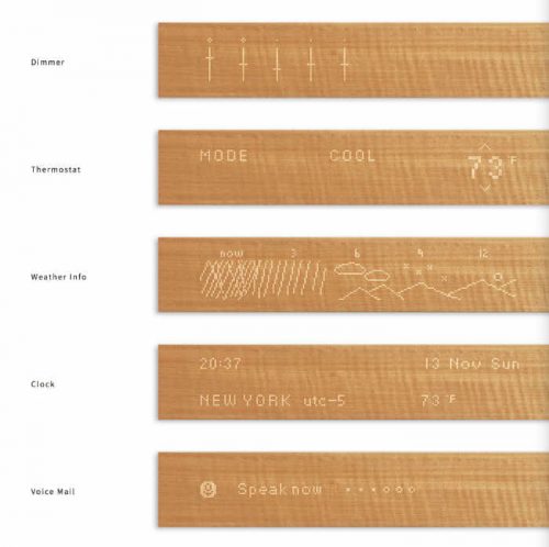 แนวคิดของอุปกรณ์ตัวนี้ก็คือ เน้นความเป็นธรรมชาติจากไม้จริง แต่ภายในอัดแน่นด้วยเทคโนโลยีล้ำสมัย หลอมรวมความเป็นธรรมชาติและไฮเทคเข้าด้วยกัน จอนี้มีชื่อว่าMUI ออกแบบมาให้แสดงข้อมูลเกี่ยวกับบ้านของคุณได้ แถมยังรายงานข่าวสาร, สภาพอากาศและการอัพเดทจากบริการต่างๆที่คุณใช้อยู่ตัวเครื่องติดตั้งแผง capacitive touch พร้อมกับเซนเซอร์บลูทูธที่สามารถรับรู้ได้ว่าคุณอยู่ที่บ้านรึเปล่าด้วยการตรวจจับการปล่อยก๊าซคาร์บอนไดออกไซด์จากตัวคุณ