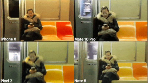 เมื่อ Evan Rodgers จาก Engadget นั้นได้ทำการทดสอบความสามารถของระบบกันสั่นของสมาร์ทโฟนเรือธงรุ่นต่างๆในรถไฟใต้ดินแล้วนำคลิปมาโพสต์ทาง Twitter โดยมือถือที่นำมาทดสอบก็มี iPhone X, Mate 10 Pro, Pixel 2 และ Note 8 ซึ่งคลิปที่ได้นั้นพบว่า iPhone X ถ่ายวิดีโอแล้วให้ภาพที่สั่นไหวมากที่สุด ส่วนภาพที่นิ่งที่สุดก็คือ Note 8