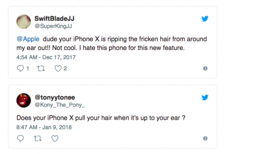 ล่าสุดเริ่มีผู้ใช้ iPhone X บ่นถึงปัญหาใหม่ที่ไม่เคยเจอมาก่อน นั่นก็คือใครที่มีผมยาวเวลาเอามือถือมาแนบหู มีโอกาสที่ผมจะไปติดช่องว่างของตัวเครื่องได้