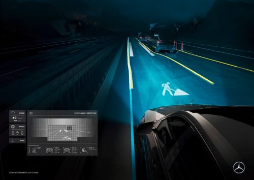 ในรถยนต์ S-Class Maybachs รุ่นใหม่จะอัพเกรดไฟหน้ารถให้ฉลาดขึ้น ด้วยการเพิ่มโปรเจคเตอร์ฉายภาพความละเอียด 2 ล้านพิกเซล ให้ความคมชัดระดับ HD เข้าไปสามารถฉายภาพลงพื้นถนนได้ โดยมันจะทำงานร่วมกับเซนเซอร์,แผนที่และระบบประมวลผลของรถในการตรวจจับสิ่งที่อยู่ด้านหน้ารถ