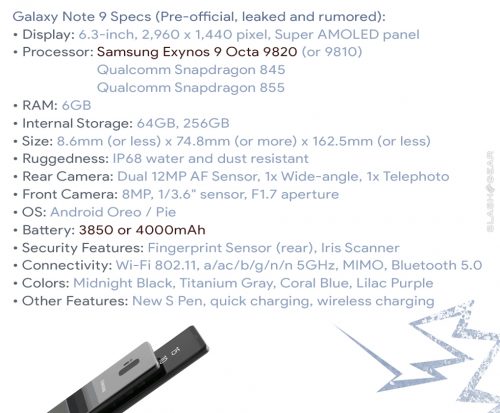 คิวต่อไปของสมาร์ทโฟนเรือธงของซัมซุงก็คือ Galaxy Note 9 ที่คาดว่าจะเปืดตัวช่วงเดือนสิงหาคม-กันยายน ซึ่งตอนนี้ก็มีข้อมูลสเปคเบื้องต้นหลุดออกมาวางวงในซึ่งยังไม่แน่ชัดว่ามาจากฝั่งเกาหลีหรือจีน