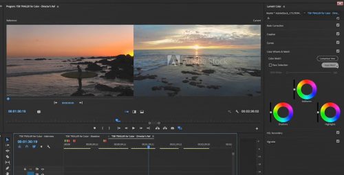 - ตัดต่อได้อย่างมีประสิทธิภาพมากขึ้นด้วยสีและแสงใน Premiere Pro CC – ด้วยเทคโนโลยี Adobe Sensei ผู้ใช้สามารถจับคู่สีในสองภาพด้วยการคลิกเพียงครั้งเดียว และใช้การปรับเปลี่ยน Lumetri ที่แก้ไขได้จากคลิปหนึ่งยังอีกคลิปหนึ่ง เพื่อให้ภาพในฉากต่างๆ มีความสอดคล้องกันในโปรเจ็กต์ทั้งหมด เปรียบเทียบภาพโดยใช้มุมมองแบบแยก ซึ่งเป็นฟีเจอร์ใหม่