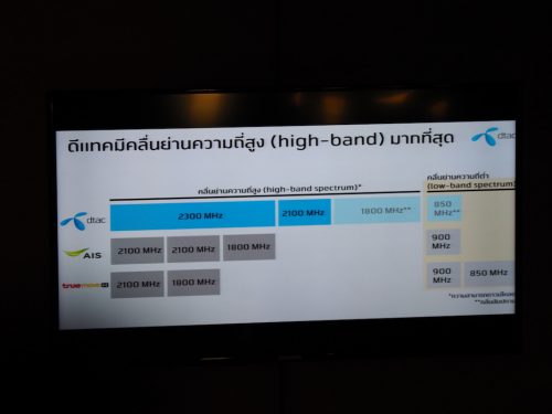 ล่าสุดทางผู้บริหาร dtac ได้จัดงานแถงข่าวแจงสาเหตุหลักที่ไม่เข้าร่วมประมูล สาเหตุหลักเพราะมีคลื่นย่านความถี่สูงเพียงพอต่อการใช้งาน เพราะ dtac นั้นเพิ่งประกาศจับมือกับทีโอทีใช้คลื่น 2300 MHz มาให้บริการ 4G LTE-TDD ด้วยความกว้างถึง 60MHz เรียกว่าเพียงพอต่อการใช้งานและชดเชยกับคลื่น 1800MHz ที่หายไป นอกจากนั้นยังมีคลื่น 2100 MHz ที่ได้จากการประมูลครั้งก่อนขนาด 15 MHz จำนวนสองสล็อต ด้วยจำนวนคลื่นในมือนั้นถือว่าดีแทคมีคลื่นย่านความถี่สูงมากที่สุดในผู้ให้บริการเครือข่ายทั้ง 3 ราย
