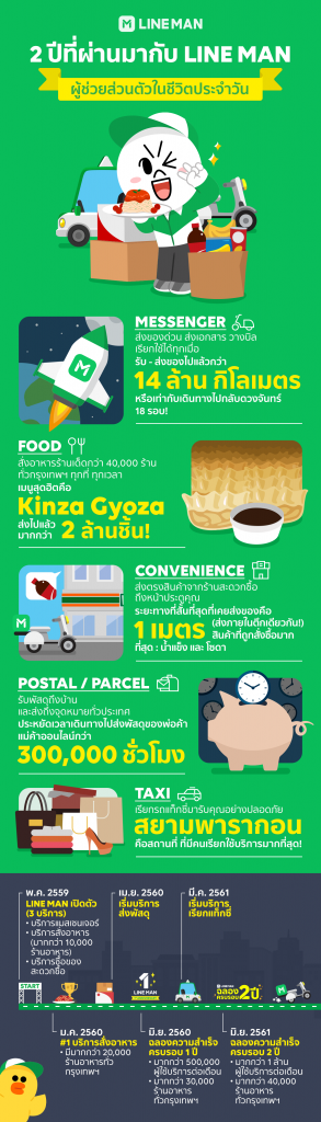 LINE MAN บริการผู้ช่วยในชีวิตประจำวันของคนไทย ฉลองความสำเร็จครบรอบ 2 ปี มีผู้ใช้บริการมากกว่า 1 ล้านคนต่อเดือนด้วยยอดสั่งซื้อยอดเติบโตกว่า 489% เมื่อเทียบกับปีที่ผ่านมา ด้วยแพลตฟอร์มที่มอบความสะดวกและครบวงจรสำหรับความต้องการในชีวิตประจำวันผ่านทั้ง 5 บริการ