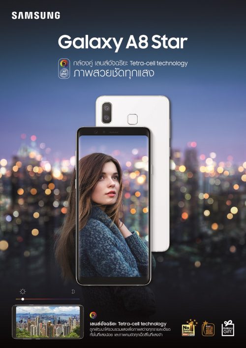 ซัมซุงเปิดตัว  Galaxy A8 Star ในประเทศไทยอย่างเป็นทางการ ชูจุดเด่นสมาร์ทโฟนที่พัฒนากล้องสู่ระดับอัจฉริยะ ภายใต้แนวคิด จะแสงไหน ภาพก็คมชัด เก็บรายละเอียดทุกเหตุการณ์”