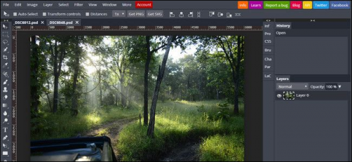 Photopea เป็นเว็บแต่งภาพออนไลน์ที่เรียกว่าใกล้เคียงกับ Photoshop มาก ทั้งหน้าตาและเครื่องมือต่างๆที่ออกแบบมาให้ใช้แต่งภาพบนออนไลน์ เราสามารถโหลดไฟล์ได้หลายฟอร์แมตขึ้นไปทำงานได้ รวมถึงโปรเจค PSD, XCF, Sketch หรือ SVG เป็นต้น ถ้าใครใช้งาน Photoshop เป็นอยู่แล้วจะคุ้นกับเครื่องมือต่างๆเป็นอย่างดี แต่แน่นอนว่าของฟรีก็ต้องมีฟีเจอร์น้อยกว่าอยู่แล้วเป็นธรรมดา ตัวเว็บหารายได้จากการโฆษณา เพราะฉะนั้นถ้าไม่อยากเห็นก็ต้องจ่ายเงินนะจ๊ะ