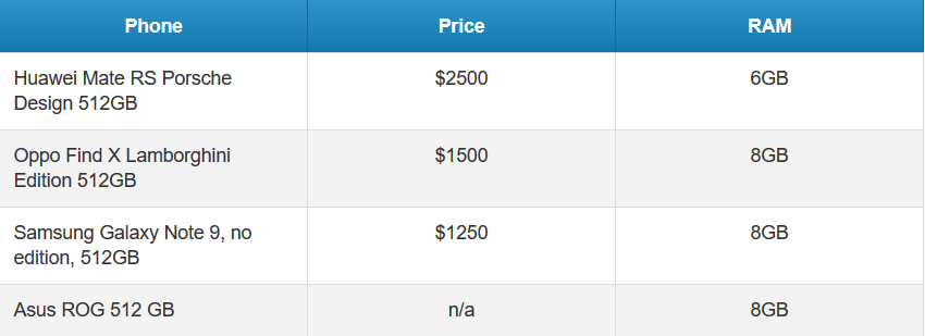 เมื่อนำมาเทียบกับคู่แข่งไม่ว่าจะเป็น OPPO Find X รุ่นท็อปอย่างลัมโบกินี่ ราคาอยู่ที่ 1,500 ดอลล่าร์สหรัฐ และ Huawei Mate RS ที่ตกแต่งพิเศษ ก็ราคาหลุดที่ 2,500 ดอลล่าร์สหรัฐด้วยกัน