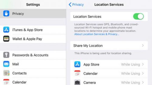 ส่วนฝั่ง iOS ให้เข้าไปที่การตั้งค่า กดที่ Privacy > Location Services จากนั้นเราก็จะเห็นรายชื่อแอปทั้งหมดที่ใช้ข้อมูลพิกัด เราสามารถเลือกตั้งค่าแต่ละแอปได้ 3 ระดับคือ ให้ใช้ข้อมูลพิกัดได้ตลอด, ใช้ได้เฉพาะที่เราเปิดแอปนั้นๆ และไม่ให้ใช้เลย