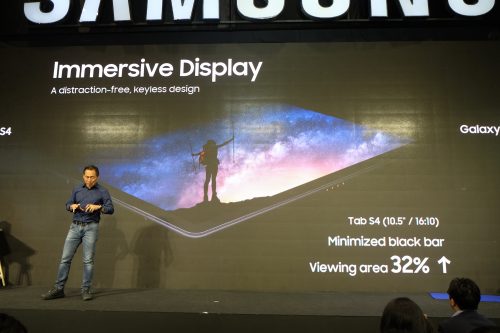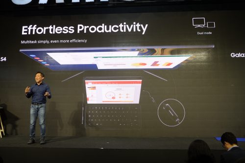 “กาแลคซี่ แท็บ เอส 4” ที่จะมาเป็นทั้งผู้ช่วยในการทำงาน และเพื่อนรู้ใจเพื่อความบันเทิง ซึ่งเป็นครั้งแรกที่ซัมซุงนำระบบ DeX มาใช้งานบนแท็บเล็ต ทำให้ กาแลคซี่ แท็บ เอส 4 สามารถทำงานได้เสมือนบนพีซี สามารถพิมพ์งานต่างๆได้อย่างสะดวกเพียงต่อเข้ากับอุปกรณ์เสริม Book Cover Keyboard และยังสามารถต่อแท็บเล็ตให้แสดงภาพบนจอคอมพิวเตอร์ได้ด้วยสาย HDMI เพียงเส้นเดียว