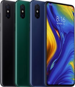 Mi MIX 3 มีจำหน่าย 3 สี ประกอบไปด้วย สีเขียวหยก (Jade Green), สีฟ้าพลอย (Sapphire Blue) และสีดำนิล (Onyx Black) โดยจะเริ่มจำหน่ายในประเทศจีน วันที่ 1 พฤศจิกายน 2561 ผ่านช่องทางออนไลน์และออฟไลน์ โดยราคาจะอยู่ที่