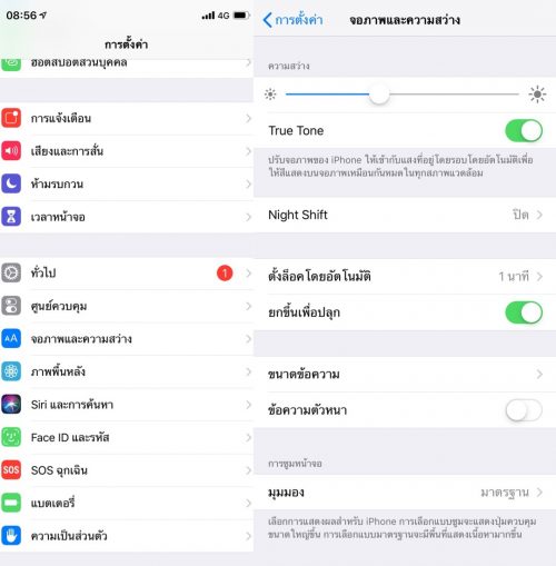 1.3 ถ้าคุณอยากสบายตา สามารถปรับ TRUE TONE (มีเซนเซอร์วัดแสงโดยรอบมากถึง 6 ช่องสัญญาน) ตามสภาพแสงห้องที่เราทำงานได้ด้วย แล้วปรับWhite-Balance หน้าจอตามอุณหภูมิแสงห้อง ซ๊ชอบฟังก์ชั่นนี้ตั้งแต่เริ่มบน iPad Pro ค่ะ ใช้จริง ใช้จอนานหน่อยก็ สบายตาขึ้น… แต่ถ้าคุณกำลังทำงานอยากแคร์เรื่อง”สีของภาพที่จะได้จริงๆ” อยากเทียบสีเวลาคนส่งรูปมาให้ดูต้องปิดโหมดนี้เพราะบางทีมันก็หลอกตาสีจริงที่คนส่งรูปมาได้เหมือนกันเพราะจออยากให้เราสบายตาเลยต้องเลือกเอาค่ะว่าจะเปิดหรือปิดโหมดปรับสีหน้าจอเพื่อความสบายตานี้